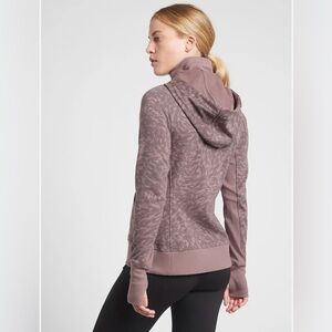Athleta hoodie, Athleta zip-up jacket, women’s activewear jacket, mauve workout hoodie, Athleta thumbhole jacket, gym jacket, running hoodie, casual athleisure top, Athleta full zip hoodie, soft cotton blend hoodie