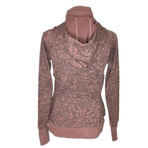 ATHLETA TRIUMPH PRINTED HOODIE Purple Zip-Up Hoodie Thumbholes Activewear Sz M