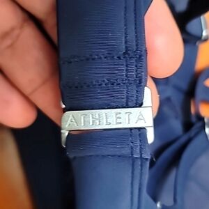 ATHLETA TWISTER GATHERED BIKINI TOP BLUE 38B/C