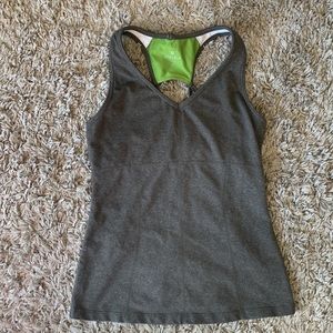 Athleta tank, size S. Color is grayish/olive green. Has shelf bra. Excellent condition.