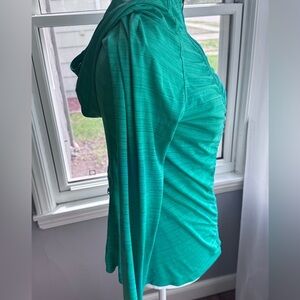 Stylish teal long sleeve athletic top. Perfect for workouts.