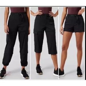 Athleta black Trekkie convertible cargo pants size 16. New with tags, retail $139. Style transforms from full-length pants to capris or shorts with zip-off legs. Features adjustable waist, functional pockets, and lightweight stretch fabric—perfect for travel, hiking, or everyday wear.