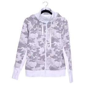 ATHLETA Triumph Printed Hoodie Grey Gypsum Camo Zip Up Stretch Active Women's M