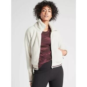 ATHLETA Tugga Sherpa Jacket Natural High Neck Full Zip Ribbed Cuffs Women's XS
