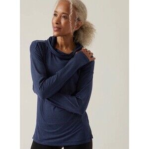 ATHLETA UPTEMPO ll HOODIE SWEATSHIRT IN HEATHER BLUE Athletic Top Women's M EUC