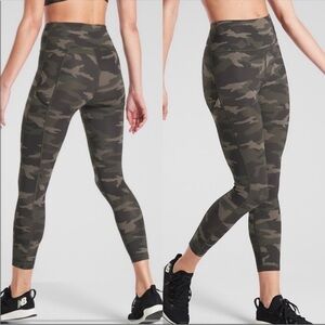 ATHLETA Ultimate Camo 7/8 Tight Leggings Olive Stash Pockets Active