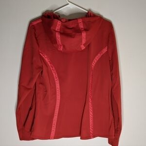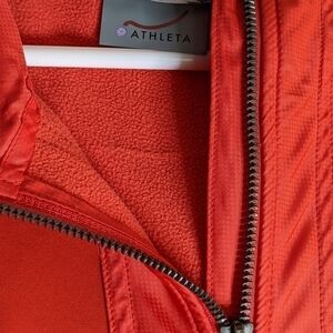 Athleta Verbier Womens Orange/Red Full Zip Hooded Fleece Lined Jacket With Thumbholes