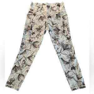 ATHLETA WOMENS HIGH WAIST GRAY FLORAL 23” INSEAM LEGGINGS SIZE MEDIUM