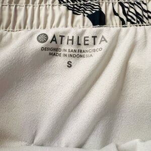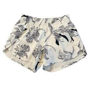 ATHLETA WOMEN’S WHITE & BLACK TROPICAL PATTERN ATHLETIC SHORTS SIZE SMALL
