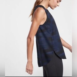 ATHLETA WOMEN'S ZEPHYR PRINT TANK IN BLURRED CAMO NAVY SIZE XS