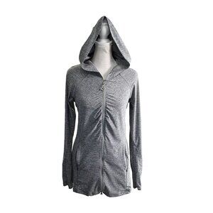ATHLETA Women Ruched Front Zip Jacket Sz S Gray Hooded Long Sleeve hb-27