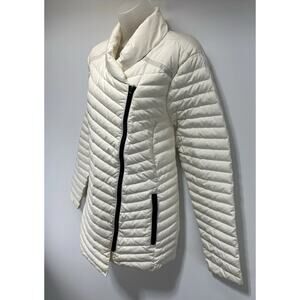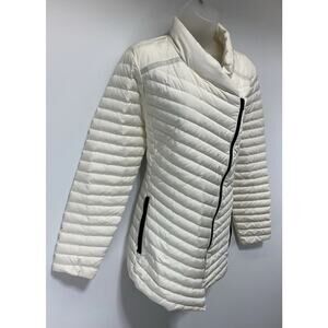ATHLETA Women's Asymmetrical So Down Puffer Jacket in Ivory size XL with Pockets