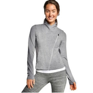 ATHLETA Women’s On The Move Grey Asymmetrical Zip Wool Blend Moto Jacket Size XS