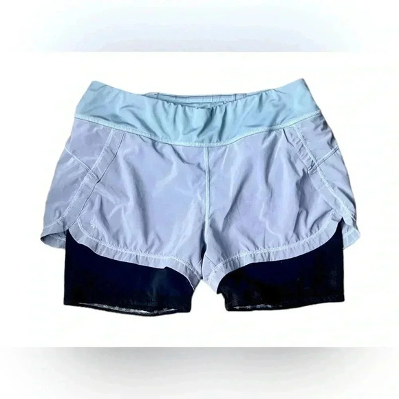 ATHLETA Women's Pulse Running Shorts 2 in 1 Layered blue/ Black Sz M