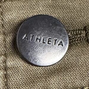 The ATHLETA Women's Summit Cargo Pant in Olive Green Stripe is a versatile and functional pair of pants perfect for outdoor activities such as hiking and walking. Pants have zip cargo pockets. All zippers are in good condition. No stains or rips.