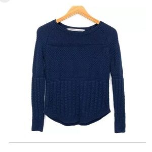 ATHLETA Womens Sweater Navy Blue Textured Knit Merino Wool size extra small, no stains no rips from non-smoking home