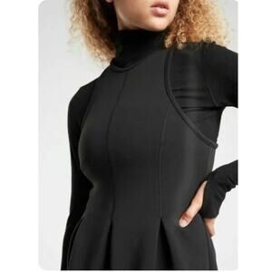 ATHLETA | XSP | En Route Black Sleeveless Pleated Zip Back Scuba Mini Dress