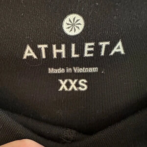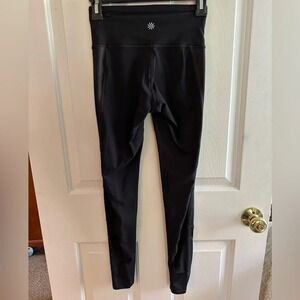 ATHLETA XXS Black Hi-Rise Leggings Mesh Detailed Ankles and Patterned Thigh