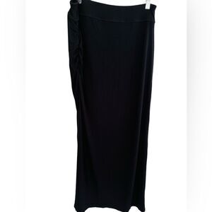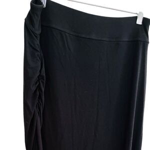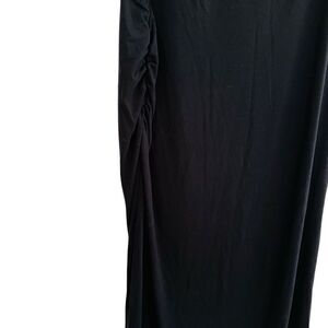 Comfy stretchy cotton jersey material, rayon and spandex blend. Slightly ruched on one side. Side slit.