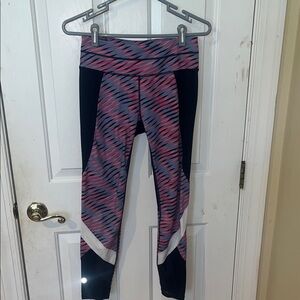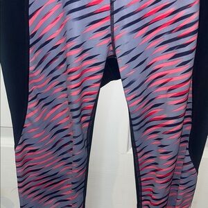 Elevate your workout wardrobe with these stylish pink and blue leggings. Designed for comfort and performance, they are perfect for any active lifestyle.
