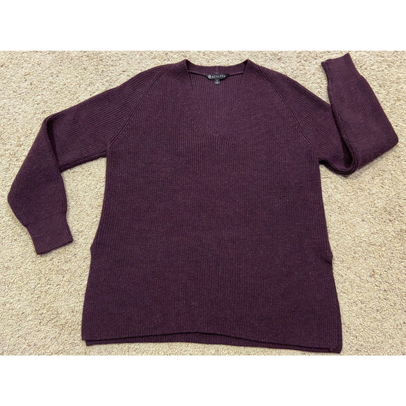 ATHLETA size S SWITCHBACK Pullover OVERSIZED SWEATER Purple Merino Wool Y22