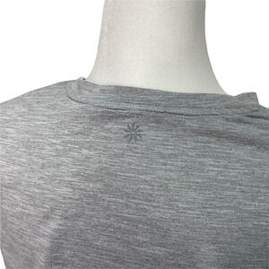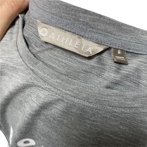 Athleta womens size Small gray crew neck Born To Rise tee in good preowned condition. Shows some pilling from wash and wear as seen throughout photos.