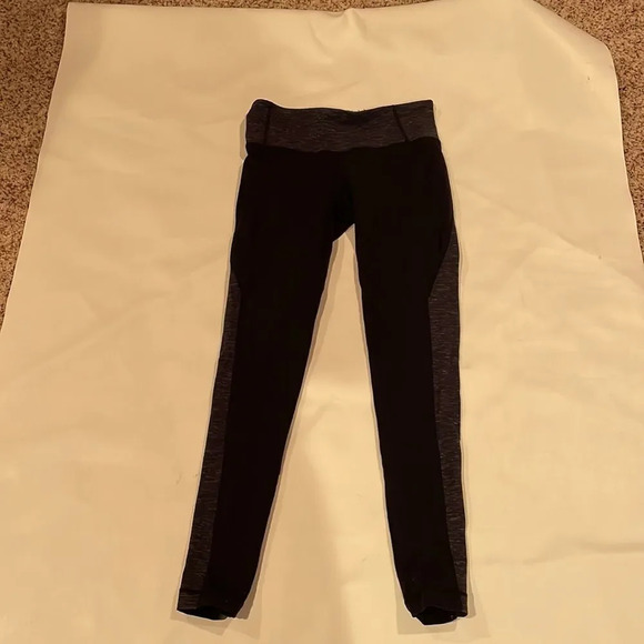 Athleta woman’s black and grey leggings. They are a size XS. They are super cute and in good condition.