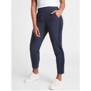 ATHLETA Brooklyn Textured Ankle Pants Navy Windowpane Plaid Sz 2