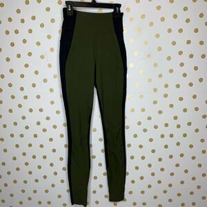 •Features: Green and black color block leggings. High rise. Four pockets - two front zip two back zip. Never ending inner drawstring. Fabric has stretch