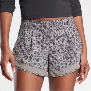 ATHLETA Mesh Racer Run Short 4" Libra Gray Animal Print Size M