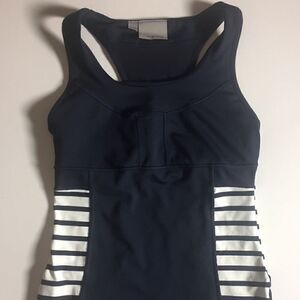 ATHLETA Navy/White Striped Racerback Bra In Tank