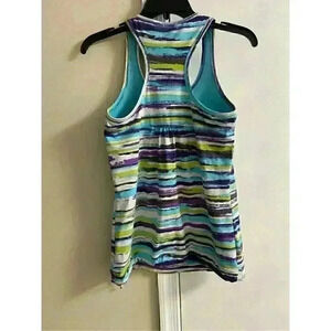 ATHLETA WOMEN'S Racer Back Multicolor Stretchy with Attached Bra Tank Top, Small