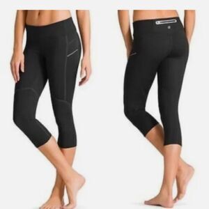 ATHLETA Womens Size X-Small Stride Capri Leggings Black Reflective Media Pocket