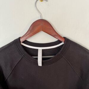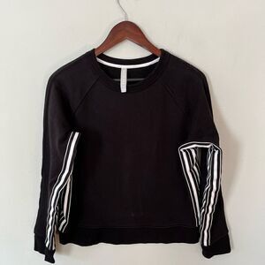 ATHLETA black crew neck sweatshirt with white inner arm stripe.
