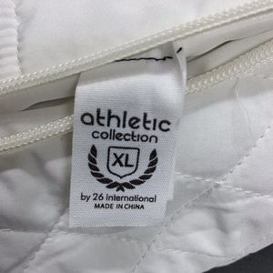 ATHLETIC COLLECTION Reversible Zip Up Vest | one side is all white and the other side is grey and black print on the white vest | white side has zipper pockets |