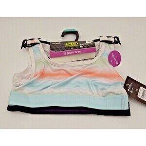 This 2 pack sports bra set from Athletic Works is perfect for active girls. The bras are made from a comfortable polyester, spandex blend material that is both breathable and moisture-wicking, ensuring they stay cool and dry during sports activities. The bras come in a fun multicolor and one white with black trim, a size 30 that fits rib cage size 25" perfect for girls in this age range. The garment care instructions are machine wash cold and tumble dry low, making it easy to keep them clean and fresh. These sports bras are ideal for any sports theme and are perfect for kids who love to stay active. Made in Sri Lanka, this set is a great addition to any girl's wardrobe who loves to move.