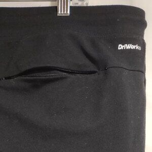 ATHLETIC WORKS, DRIWORKS, BLACK, POLY/SPANDEX/STRETCHY, ANKLE CUFF, BLACK, JOGGERS, BACK ZIP & 2 SIDE POCKETS, A FEW PILLS EASILY TAKEN CARE OF, VERY COMFY, DRAWSTRING WAIST, WOMEN'S SIZE 2XL(44-46)