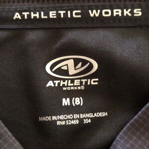 SEE MEASUREMENTS ATHLETIC WORKS Boys Active T-Shirt Size Medium 8 Black Breathable Quick Dry New 50% recycled polyester 50% Polyester! Not much stretch in fabric so allow inches for movement!
