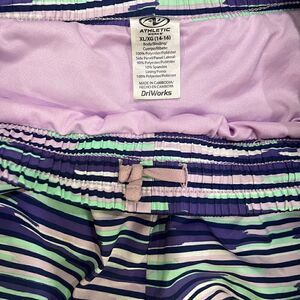 ATHLETIC WORKS GIRLS ACTIVE RUNNING SHORTS PURPLE AQUA STRIPES XL 14/16