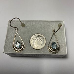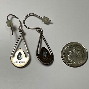 ATI Sterling Silver Dangle Earrings with a Blue Stone. 1.5 inches long