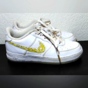 Rare Edition of Air Force 1's honoring Atlanta. "The Dirty" is scripted in gold on heeltab. "ATL" is on the deubre and insole and "Peach" etched into outer vamp (see close up pic). The Swoosh is embroidered with gold thread as is the stitching throughout the shoe.