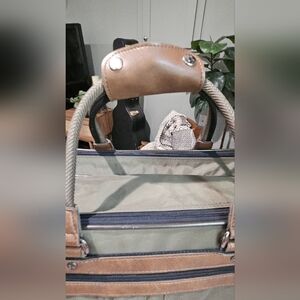 ATLANTIC Retro Vintage Travel Bag With Handles And Detachable Strap. Olive/brown