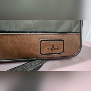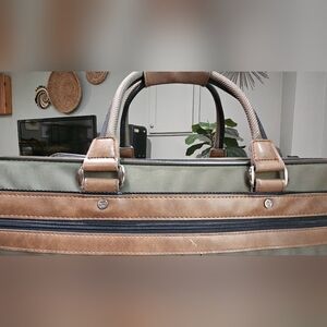 This sophisticated travel bag features a classic green and brown color scheme, perfect for both business and casual trips. Its structured design and durable materials ensure longevity, while the detachable strap offers versatile carrying options.