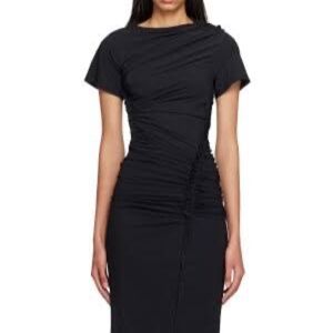 ATLEIN Navy Blue Asymmetrical Ribbed Ruched Midi Dress excellent condition
