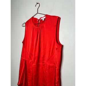 ATLIEN Red Satin Ruffle Sleeveless Crewneck Waist Tie Shift Dress Size Large