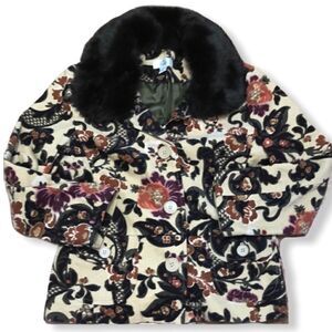 ATL Studio Floral Blazer Removable Faux Fur Sz 8