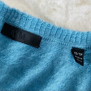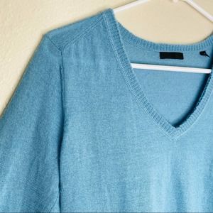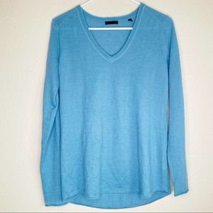 ATM 100% Cashmere V-Neck Raw Edge Sweater in French Blue
