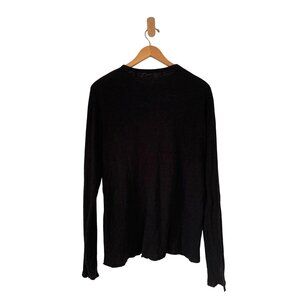 ATM Anthony Thomas Large Melillo Black Slub Jersey Destroyed Wash Henley Shirt