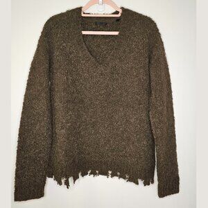 ATM Anthony Thomas Melillo Alpaca Merino Destroyed Hem Boucle Sweater, S, Olive