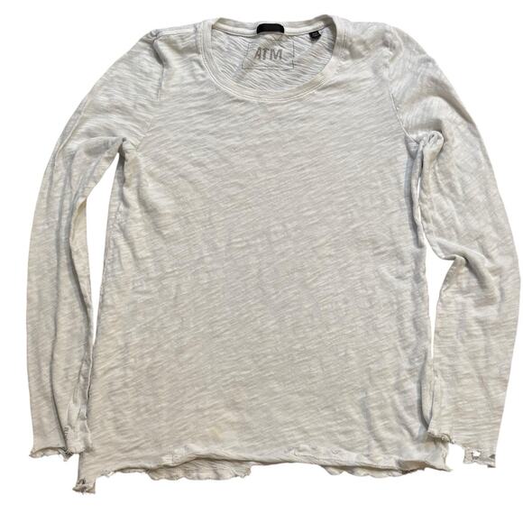 ATM Anthony Thomas Melillo Long Sleeve Slub Tee Medium Distressed White
